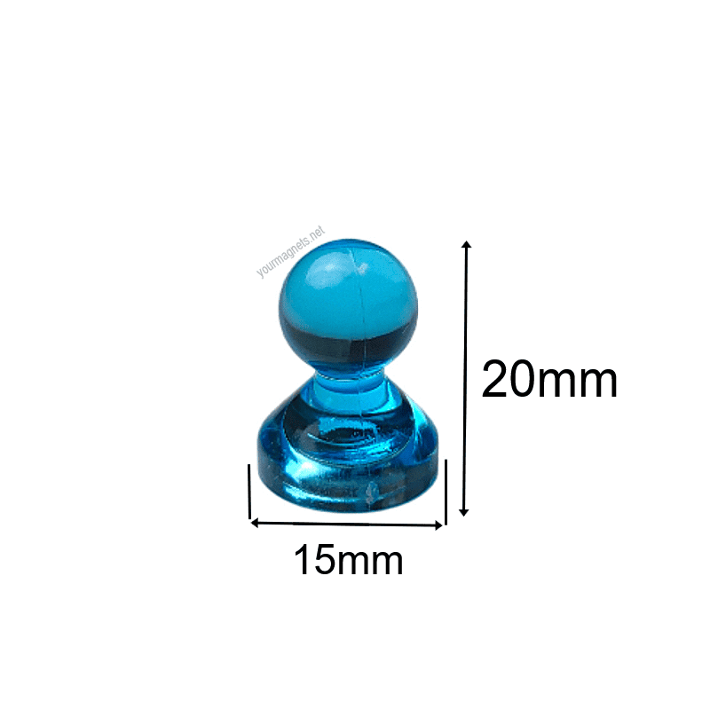This blue transparent cone magnet combines modern design with strong magnetic performance. Measuring 15 mm in diameter and 20 mm in height, it features a powerful nickel-coated neodymium core that securely holds up to 10 sheets of A4 paper on any magnetic surface.